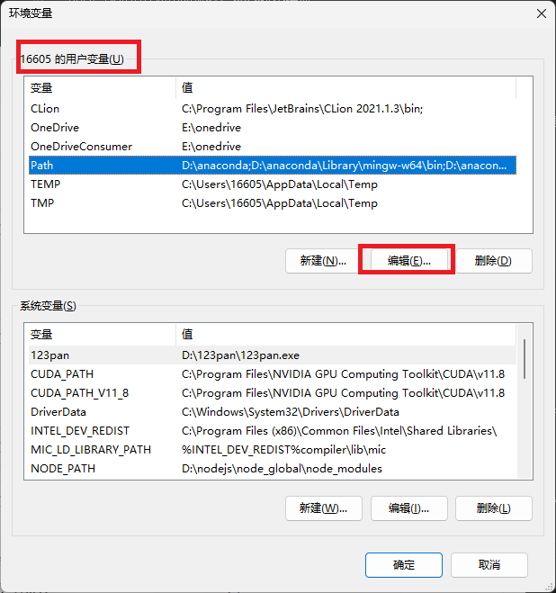 4.用户变量编辑中注意是修改npm路径,而不是新建